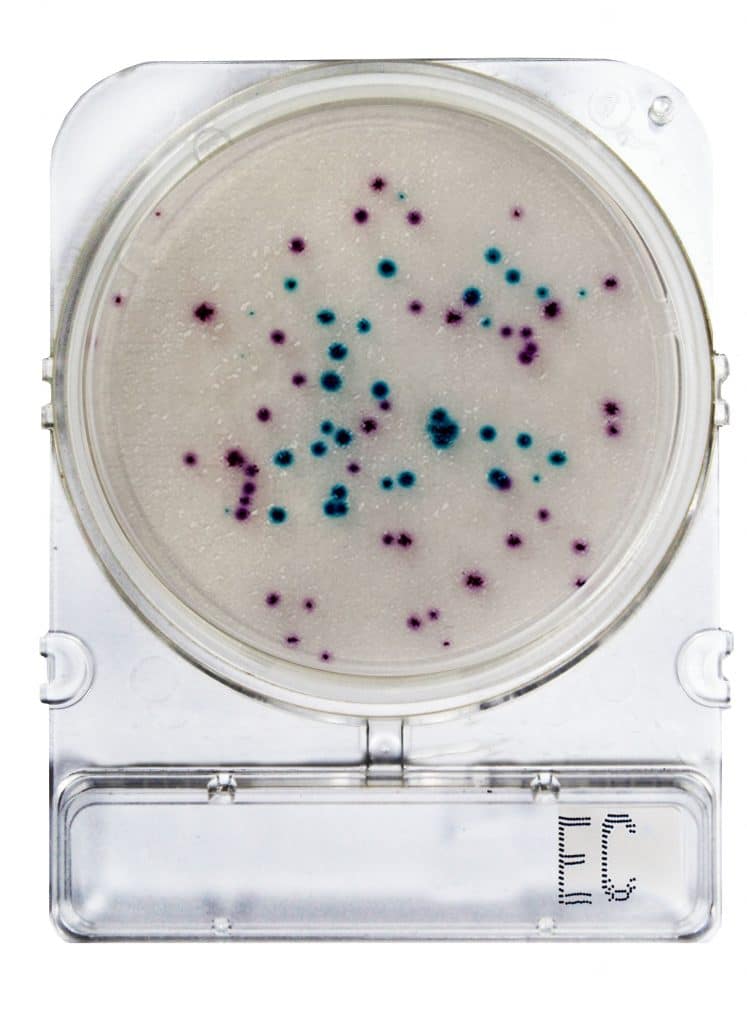 Los Coliformes se caracterizan por ser bacilos gramnegativos que no forman esporas, definidos por su capacidad para fermentar la lactosa, para producir ácido y / o dióxido de carbono gaseoso. La enzima encargada de degradar la lactosa es la β-galactosidasa y todas las bacterias del grupo de los coliformes la poseen. Por su parte Escherichia coli tiene una enzima extra llamada β-glucoronidasa. Compact Dry EC es capaz de detectar la enzima β-galactosidasa de los coliformes y la enzima β-glucoronidasa de E. coli ya contiene agentes selectivos y dos tipos de sustratos cromogénicos: Magenta-Gal y X-Gluc.