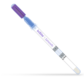 InSite Salmonella es una prueba de detección fácil de usar, validada por la AOAC, para detectar Salmonella ambiental en superficies en contacto con alimentos y equipos de procesamiento. Cada dispositivo contiene un medio líquido formulado con potenciadores del crecimiento y compuestos cromogénicos selectivos para Salmonella enterica.