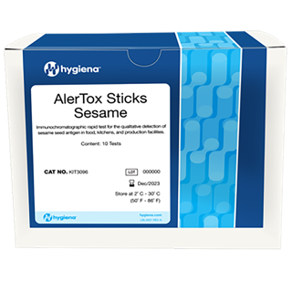 AlerTox Sticks Sesame es una prueba inmunocromatográfica rápida y fácil de usar para la detección cualitativa del antígeno de sésamo negro y sésamo blanco que se encuentra en alimentos y superficies.