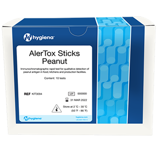 AlerTox Sticks Peanut es una prueba inmunocromatográfica rápida y fácil de usar para la detección cualitativa del antígeno de cacahuete presente en alimentos, superficies y agua de enjuague. El límite de detección es de 1 ppm en cacahuetes crudos y tostados.