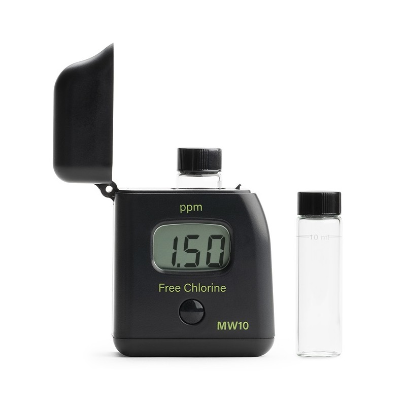 Medidor de cloro libre MW10 mide en ppm, con una escala de 0.00 hasta 2.50 ppm. Es un fotómetro digital de bolsillo. La resolución es de 0.01 ppm. Ideal para mediciones sobre el terreno; se aconseja para los sectores piscina, agricultura, tratamiento de aguas. Viene servido dos cubetas de cristal y su tapón; una pila AAA 1.5V; Instrucciones en dos idiomas; 6 sobres de reactivo en polvo.